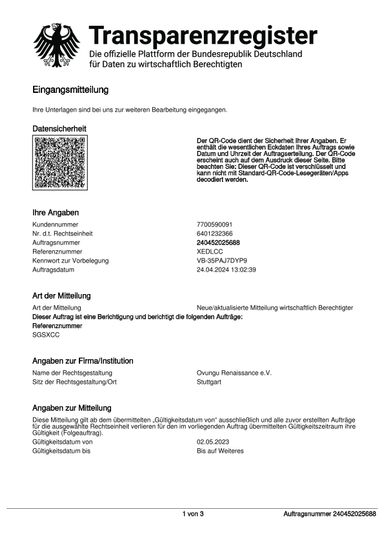 Transparenz bei Ovungu Renaissance e.V.